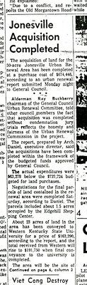 The acquisition of land for the 30-acre Jonesville Urban Renewal Area has been completed at a purchase cost of $674,446, according to an urban renewal report submitted Monday night to General Council