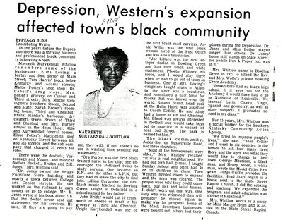 In the years before the Depression there was a thriving business and professional black community in Bowling Green. . . .